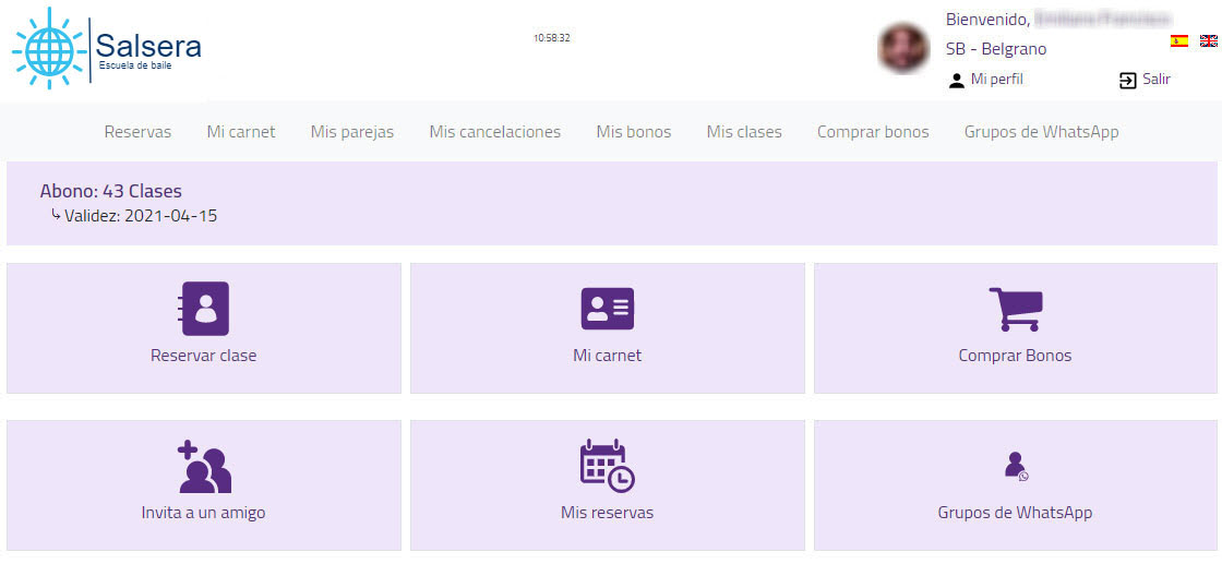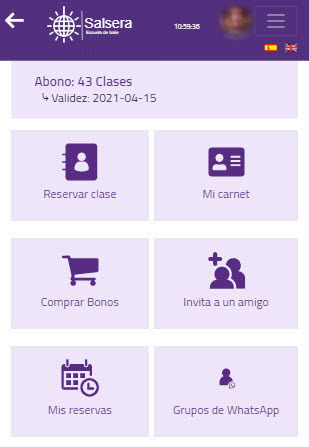 Permita que sus alumnos/as administren sus reservas desde su casa/móvil. Podrán reservar para clases futuras, comprar paquetes nuevos, administrar su/s pareja/s (con la/s cuál/es reservar de a 2), etc.